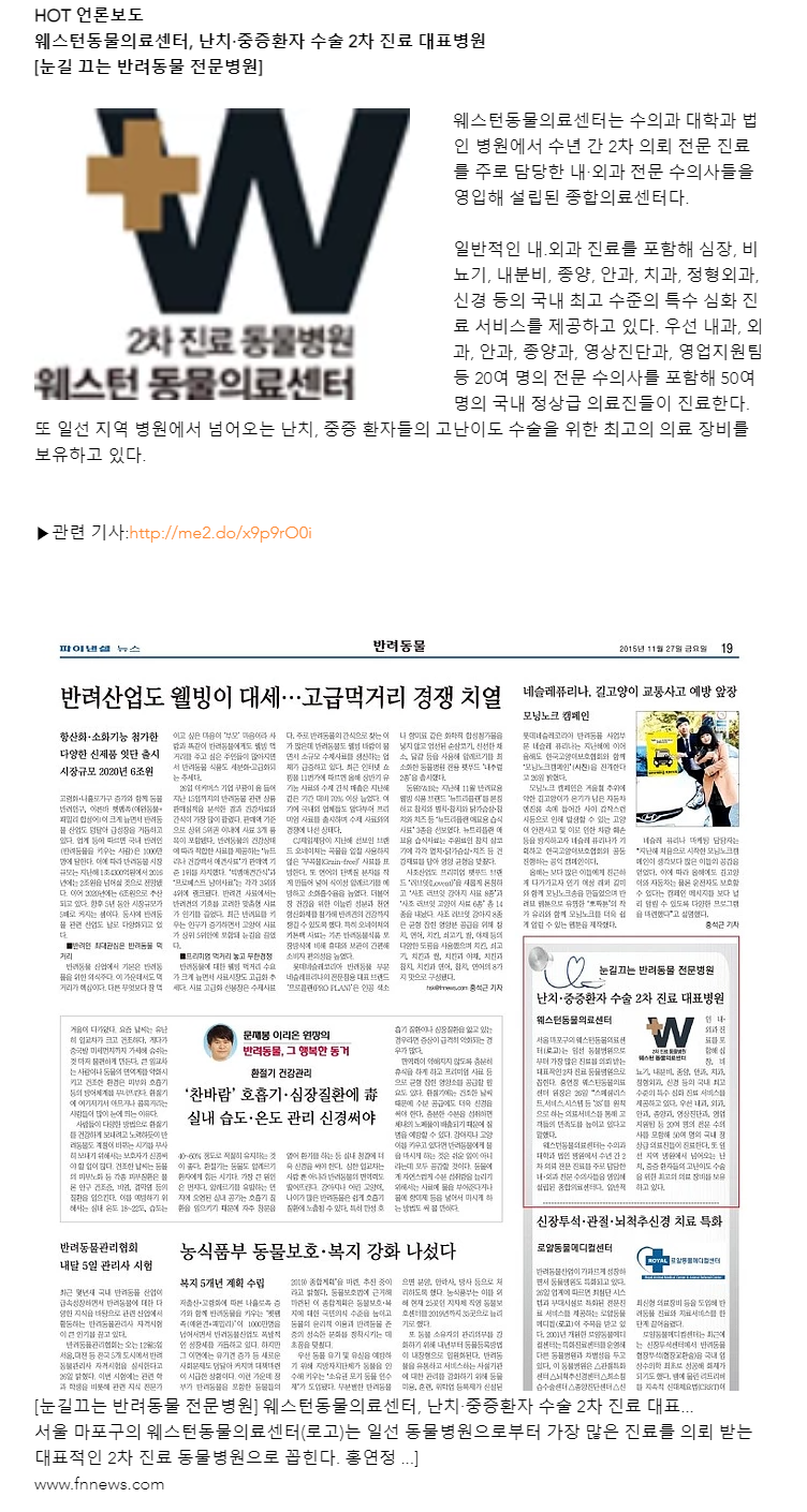 [언론보도] 파이낸셜뉴스 # 웨스턴동물의료센터, 난치.중증환자 수숭 2차 진료 대표병원