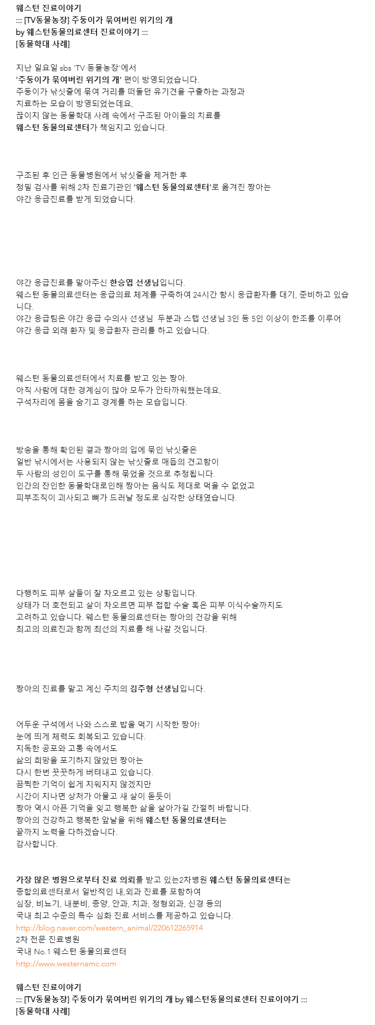 [동물농장 치료병원] 주둥이가 묶여버린 위기의 개 by웨스턴동물의료센터 진료이야기