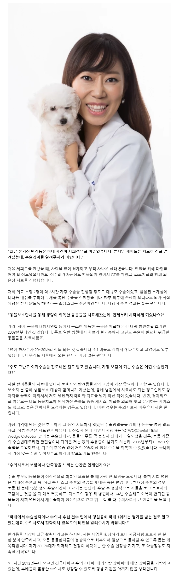 몸과 마음에 상처 입은 반려동물, 사랑으로 치료하는 홍연정 원장