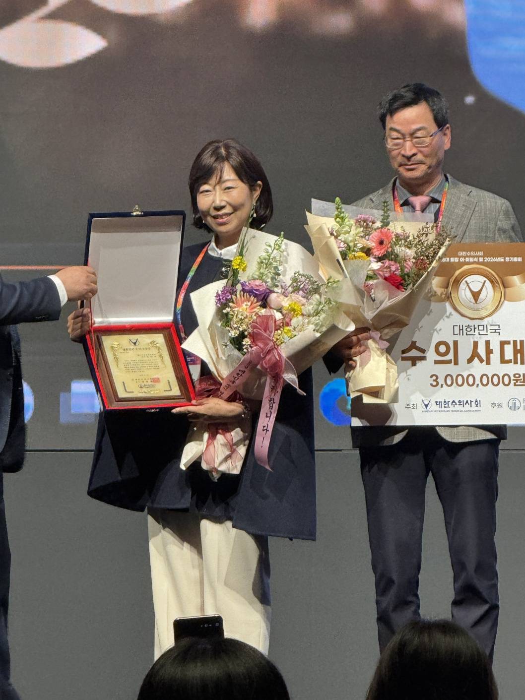 이번 수상은 오랜 시간 임상 현장에서 동물과 보호자를 위해 진료에 헌신해 온 노력과 함께, 대한수의사회 학술홍보위원장과 동물의료 회지 편집인으로 활동하며 수의학의 발전과 학술적 소통을 위해 지속적으로 기여해 온 역할이 함께 인정받은 뜻깊은 결과입니다.