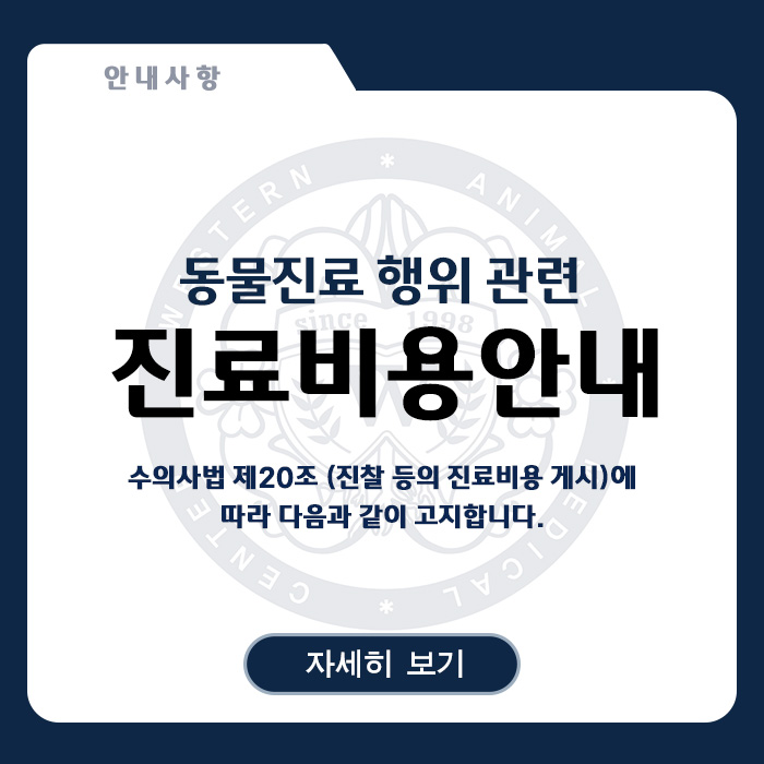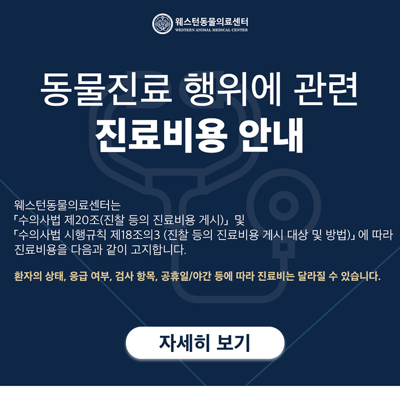 웨스턴 동물의료센터는 당신의 반려동물을 가족처럼 사랑하는 마음으로 치유하는 국내 NO.1 동물의료센터입니다