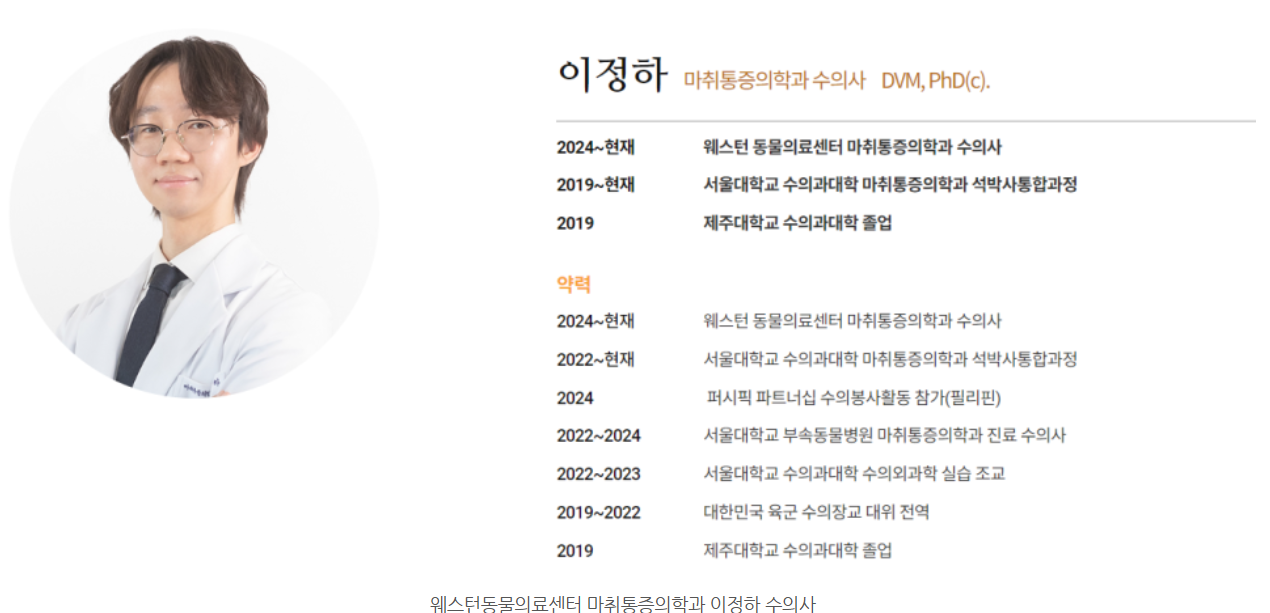 웨스턴동물의료센터는 환자를 보다 더 안전하고, 세심하게 돌보고 건강히 치료할 수 있는 석/박사 수의사 선생님들을 모시고 있는 데요.