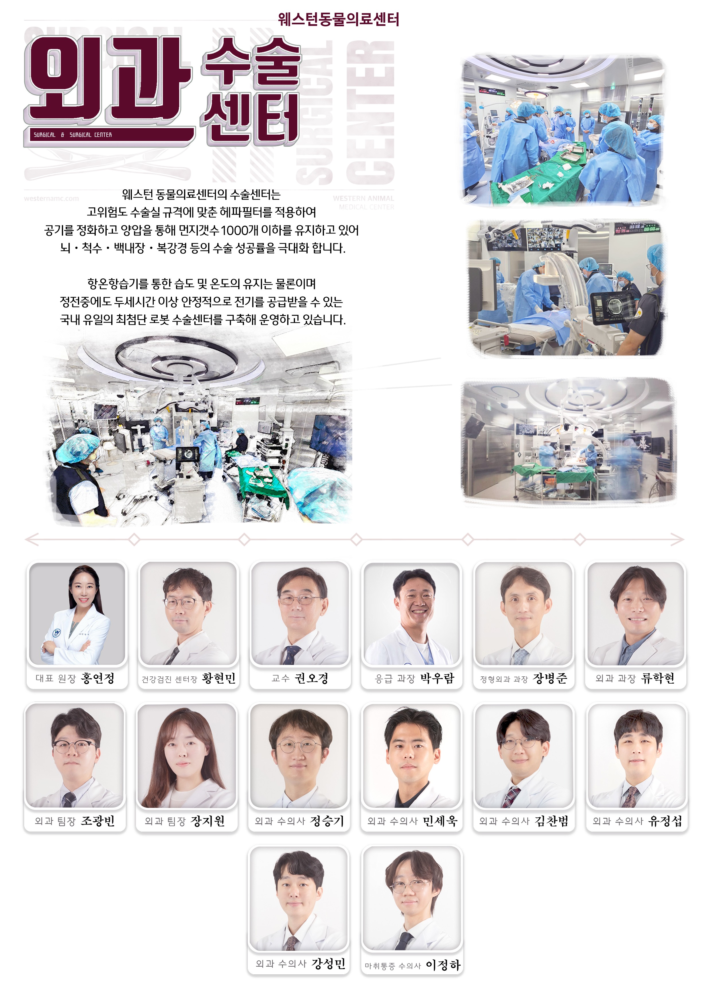 웨스턴 동물의료센터 수술센터에서는 2만 케이스 이상의 국내 최고의 수술 누적수와